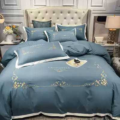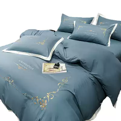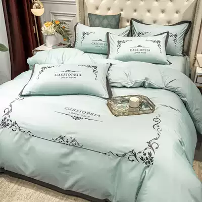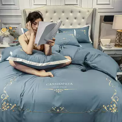 European-style embroidery ice silk four-piece set Washed silk quilt cover bed sheet Summer tencel smooth naked bed for use on the bed