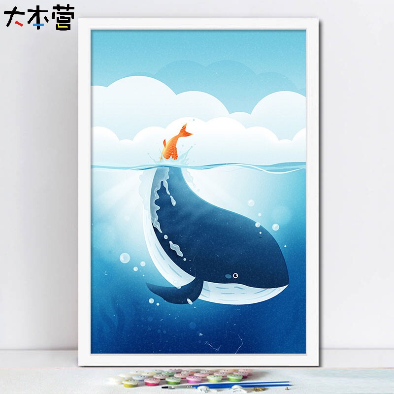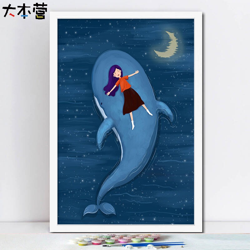 Base camp beautiful little girl whale dolphin diy digital oil painting marine world decorative painting digital oil painting