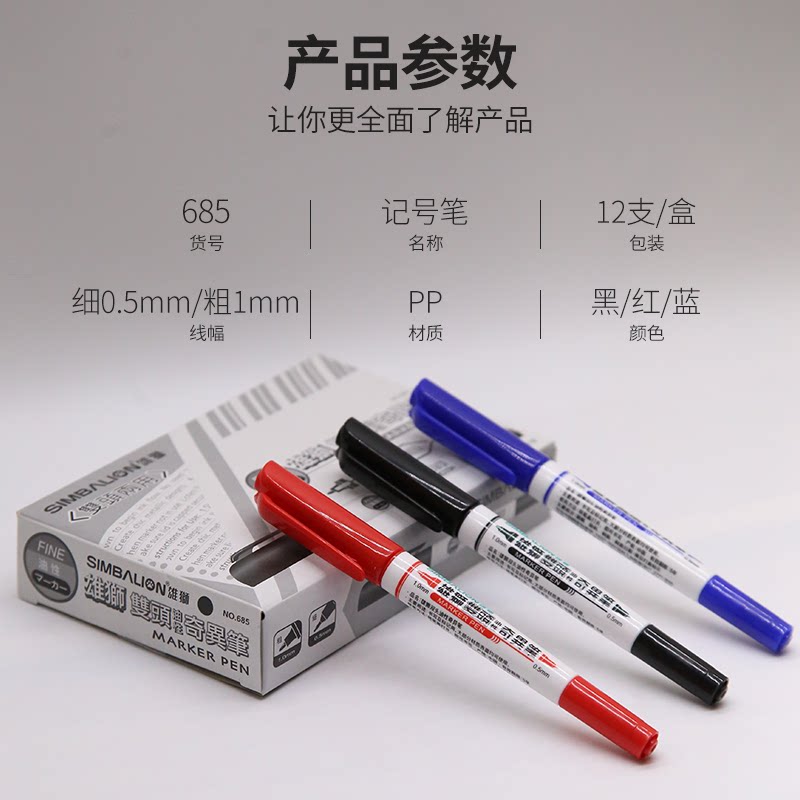 Taiwan Lion double-headed oily Kiwi pen 685 marker pen Double-headed hook line pen Small double-headed oily pen Color small double-headed set single-headed hook line pen Student art