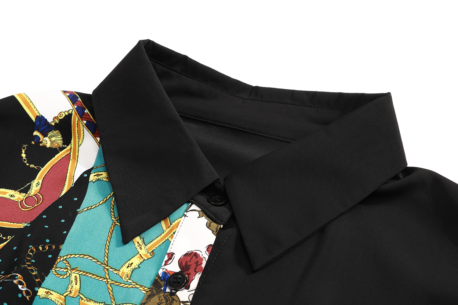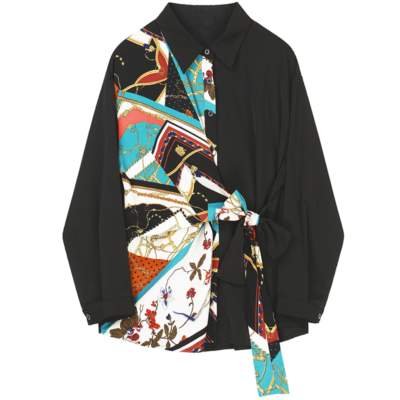 VEGA CHANG shirt female design sense niche 2021 new spring geometric print strap long-sleeved stitching shirt