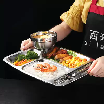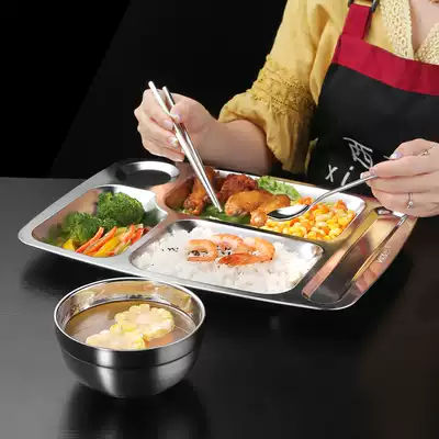 304 thickened stainless steel fast food plate grid plate Children kindergarten students adult canteen fast food plate dining utensils