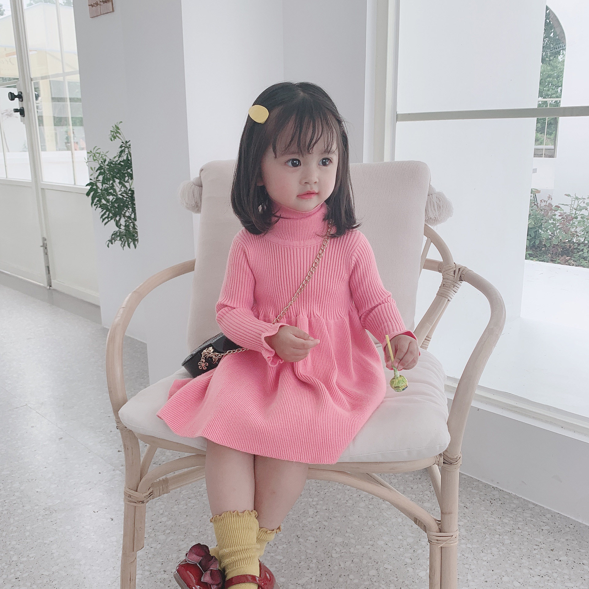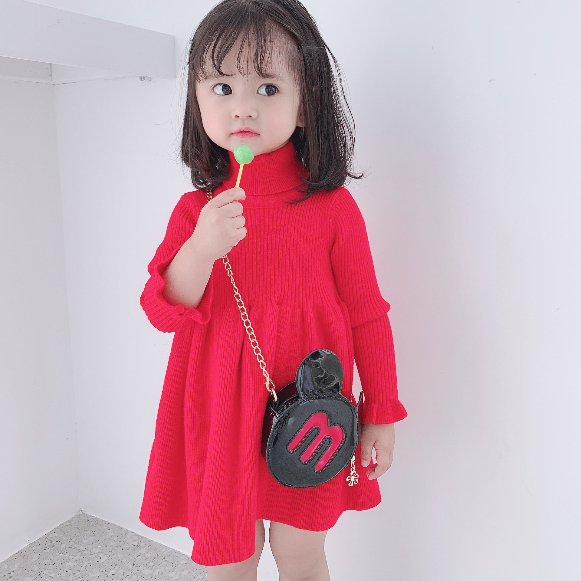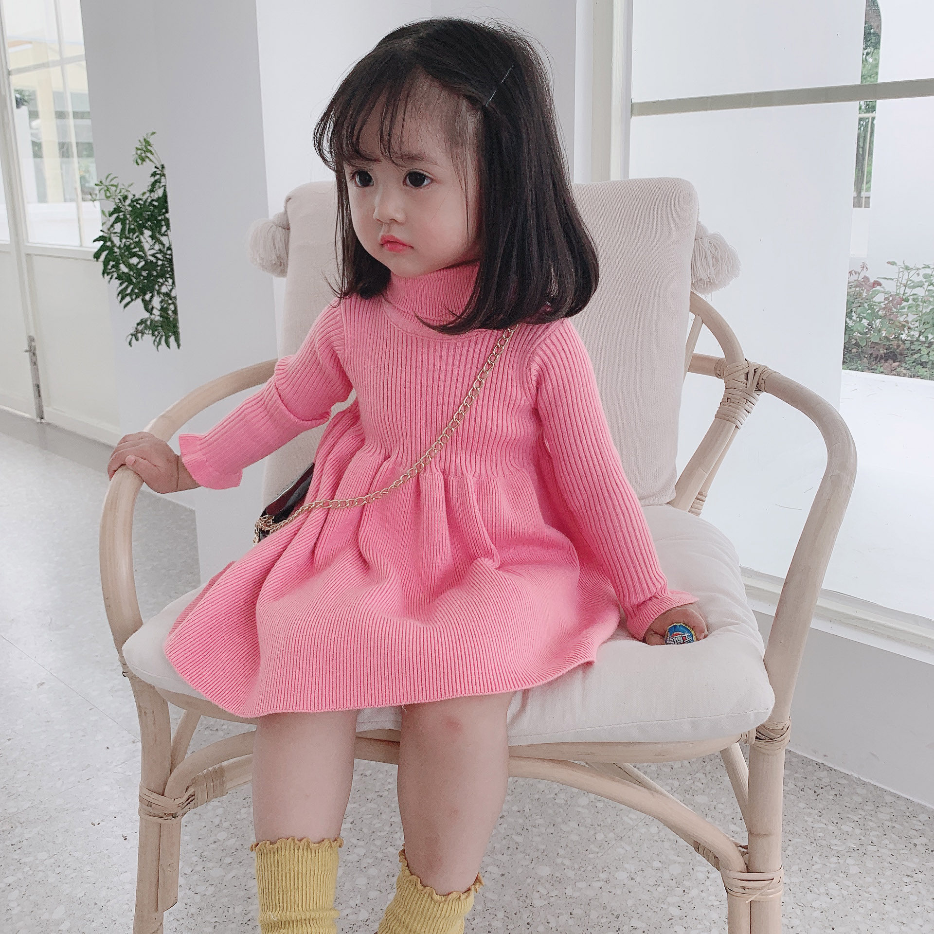 Children's clothing girls 2019 spring dress skirt new Korean version of foreign style knitted sweater dress spring and autumn children's princess dress