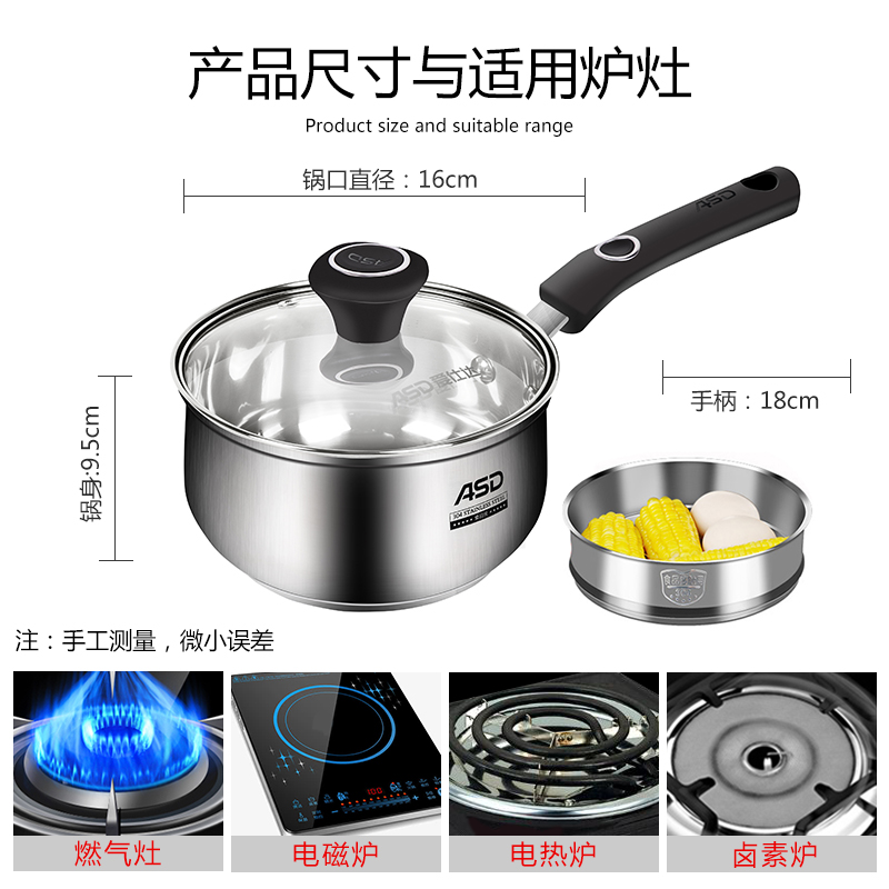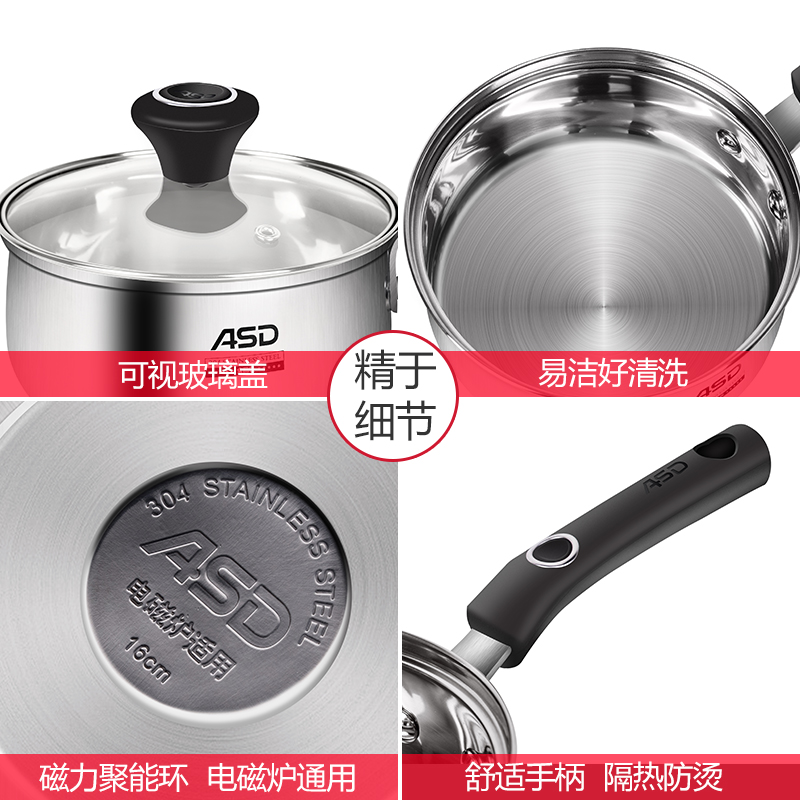 Ashida 304 stainless steel milk pot small boiling stew pot instant noodle pot baby food supplement pot induction cooker gas with soup pot
