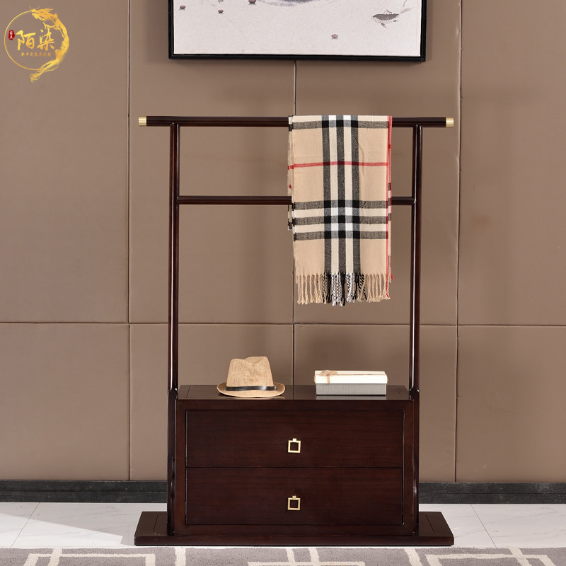 New Chinese style coat rack solid wood floor clothes rack ebony bedroom art wooden craft hanger homestay furniture
