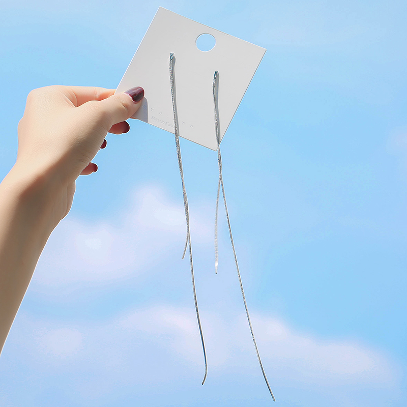 s925 pure white fungus refining super long tassel earrings female Net red 2019 New Tide Korean temperament long version ear refining ear ornaments