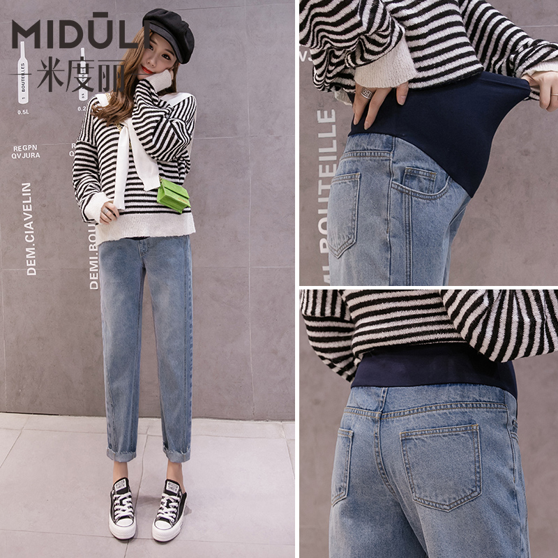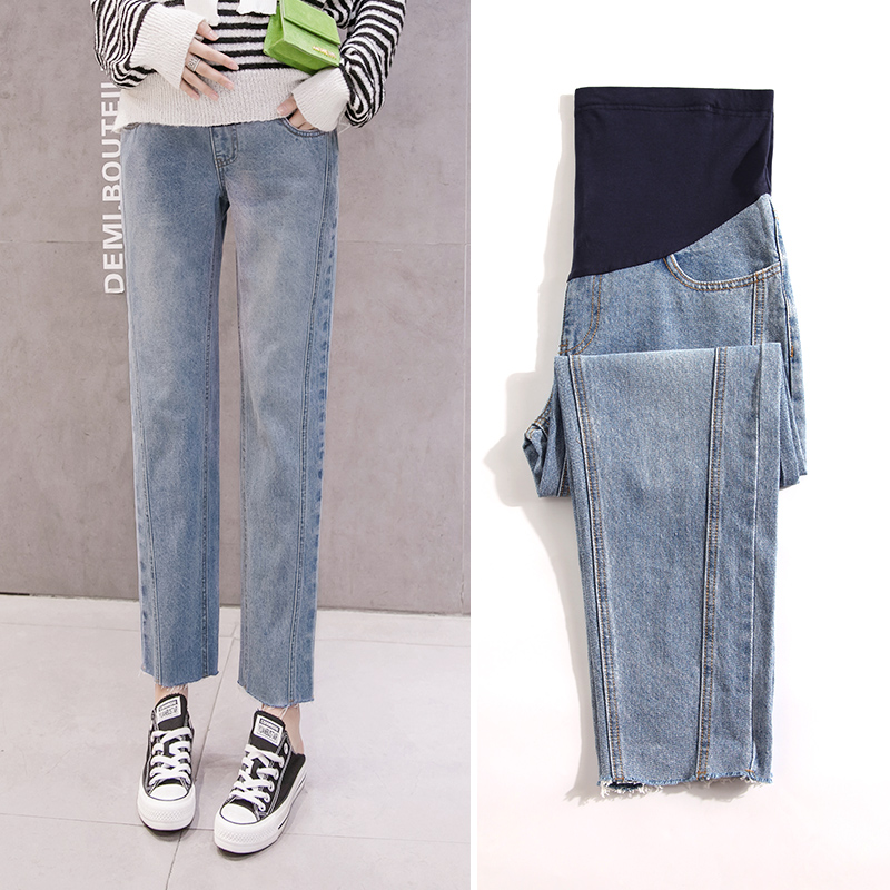 Pregnant Woman Pants Spring Autumn Fashion Pregnant Woman Jeans Spring Outwear 90% Long Pants Tidal Moms Net Red Broadlegged Old Daddy Pants