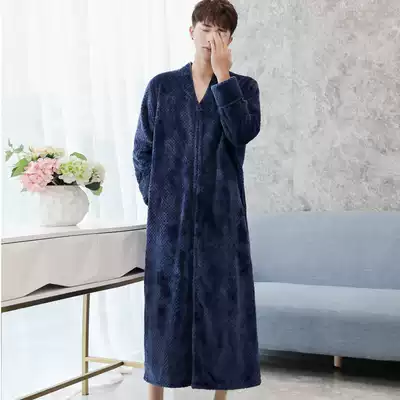 Autumn and winter one-piece pajamas men's nightgown large size bathrobe extra long flannel lazy lazy home clothes can wear coral fleece