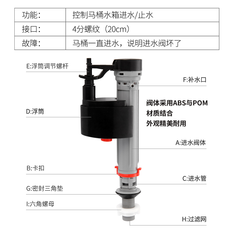 Water intake valve (height adjustable) water tank accessories (full set)