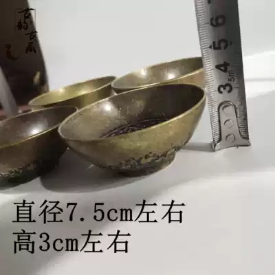 Antique antique pure copper Fu Lu Shouxi small copper bowl decoration set of retro brass xuan bottom small copper bowl craft gift decoration
