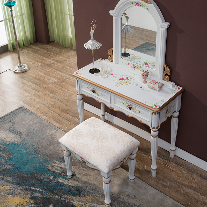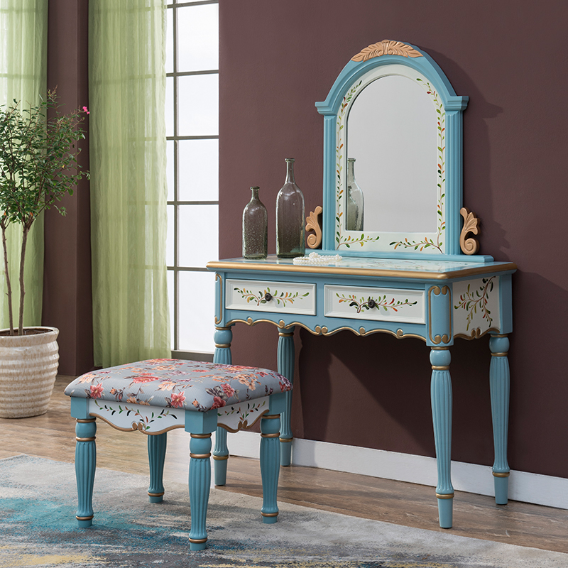American solid wood column foot makeup table Makeup table full delivery without installing a mirror twist nut for immediate use
