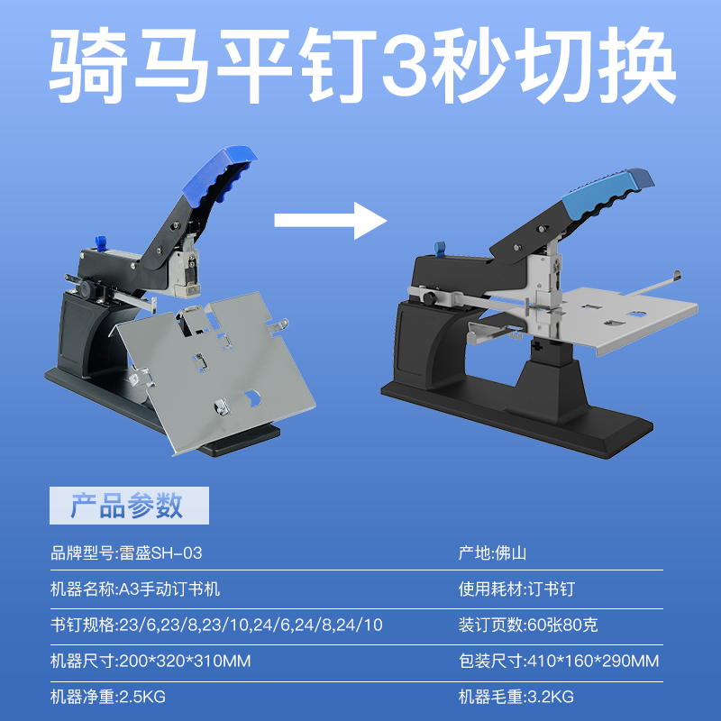 A3A4 Manual Flat Staple Riding Stapler Lei sheng SH-03 Middle Seam Desktop Stapler Heavy Labor Saving Flat Staple Book Stapler Use Universal Staple Factory Direct Sales A4 Stapler Staple Machine