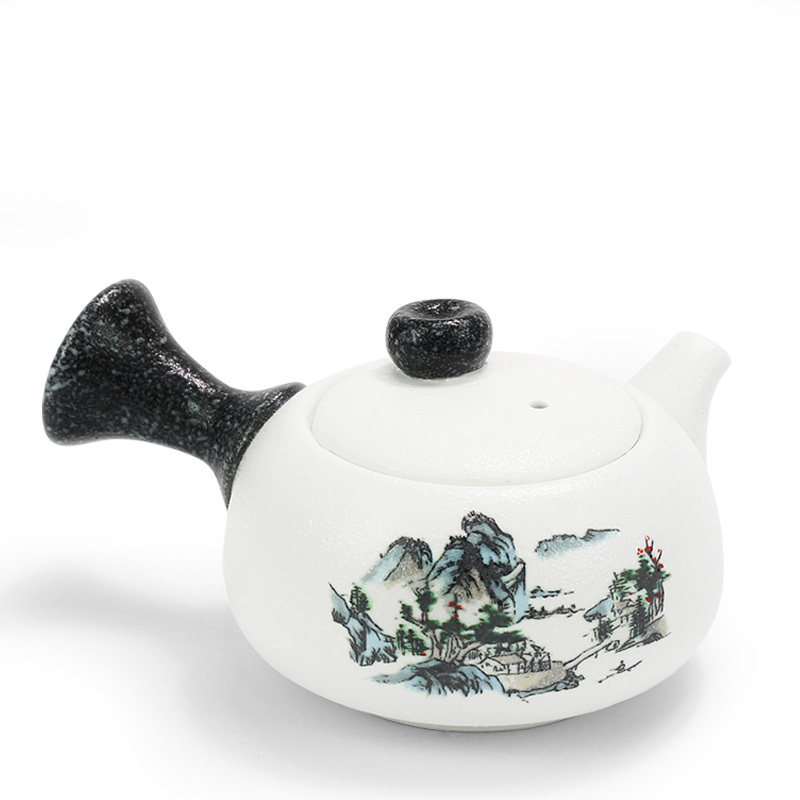 Blue porcelain teapot-year after year with fish plum green teapot-year after year with fish snowflake teapot-tap with high rise snowflake teapot-tap ice clear jade and snow flower teapot-square round with high limelight teapot-side put blue