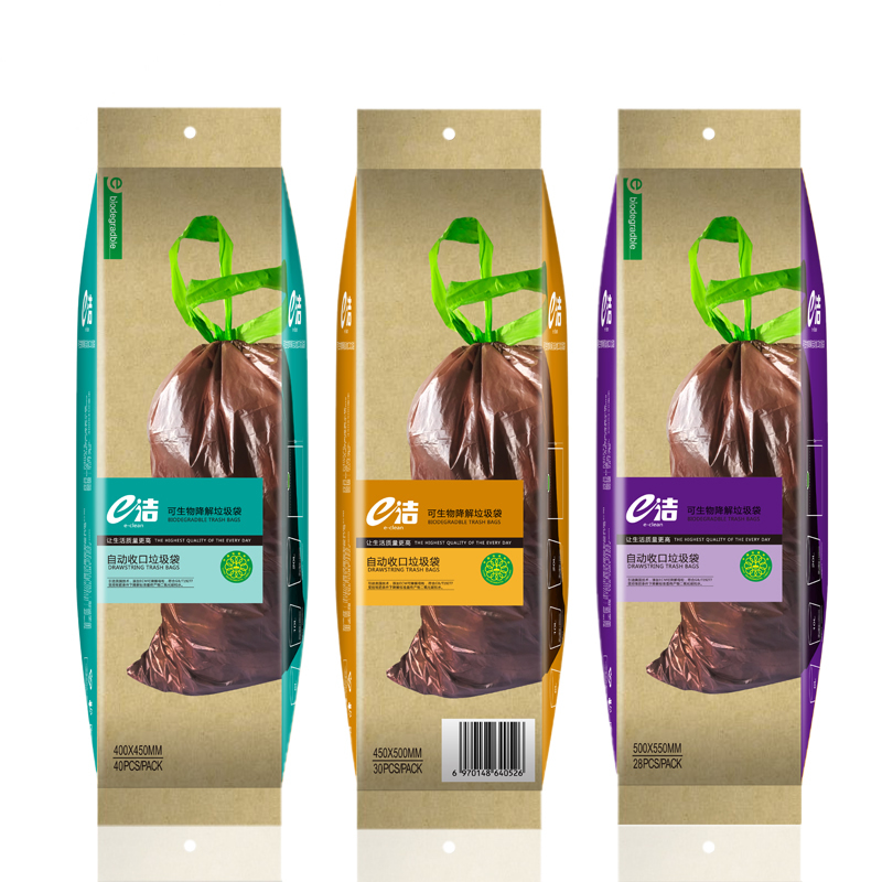 Degradable pumping rope cleaning garbage bag thickened automatic closing disposable eco-friendly kitchen Home CUHK