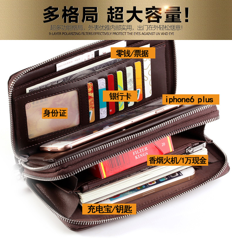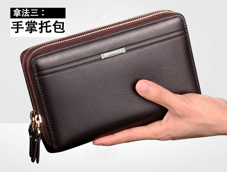 New summer men's bag double zipper men's handbag clutch men's business clutch bag double zipper wallet genuine leather