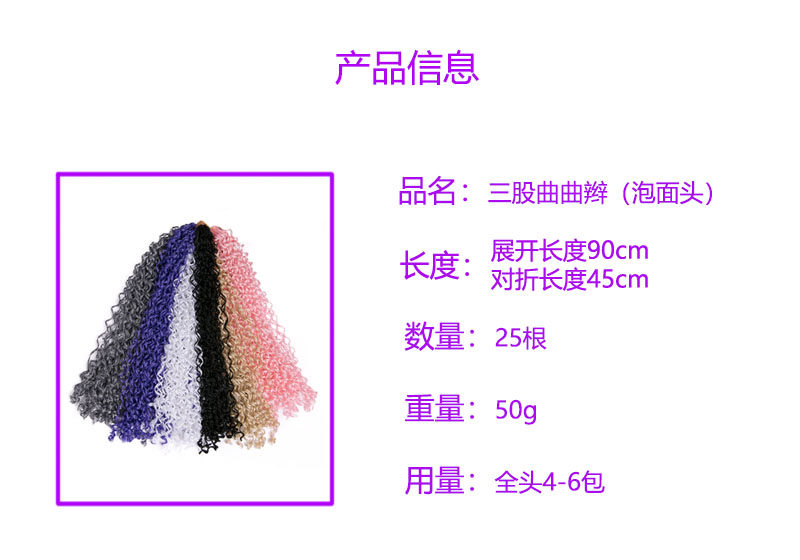 Shake the sound with net red curved braid wig dirty braid bubble face head thin three braid 3 braid African braid black curly hair