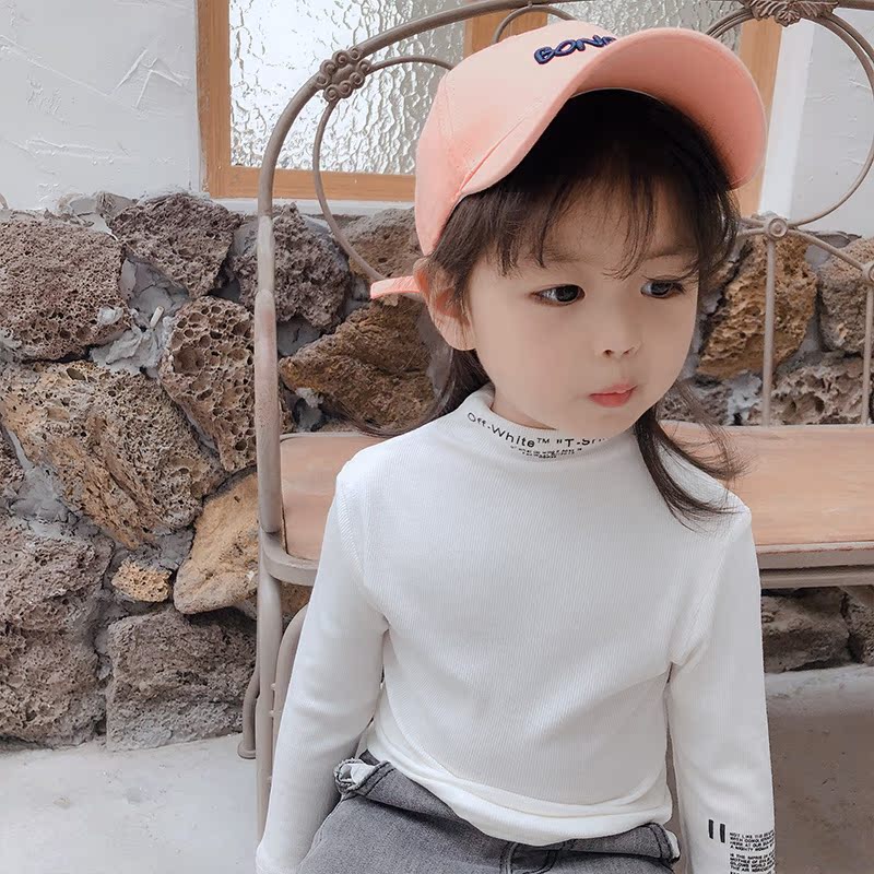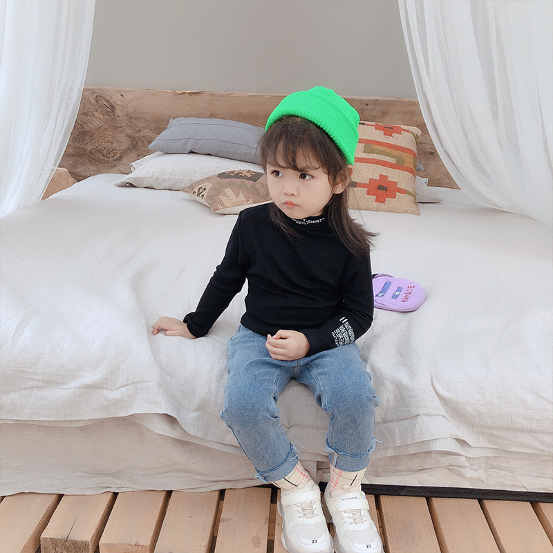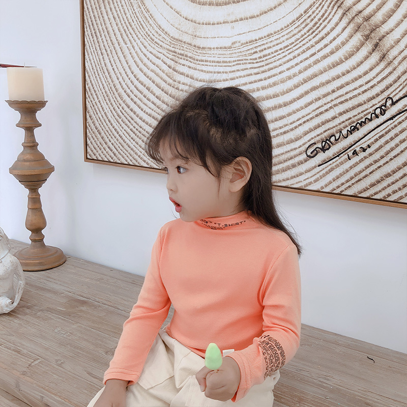 7 fold small treasure family spring and autumn children stand collar base shirt boy girl candy color letter long sleeve T-shirt baby