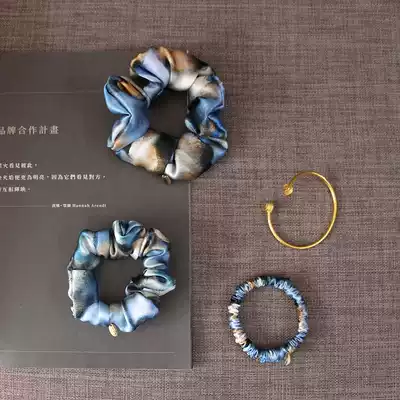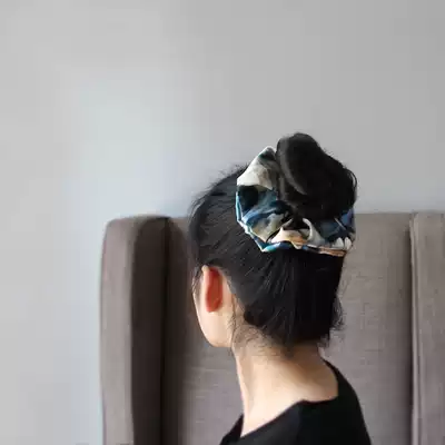 Monai Garden Retro Oil Painting Beauty 6A Grade Silk Hairband 19 Mumi Gray Blue Morandi Color Hair Accessories