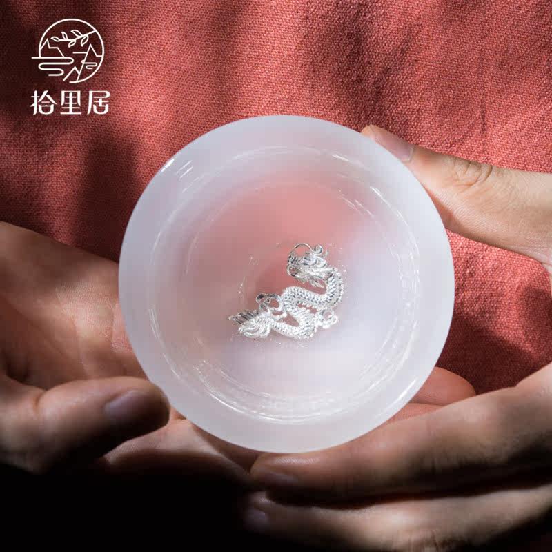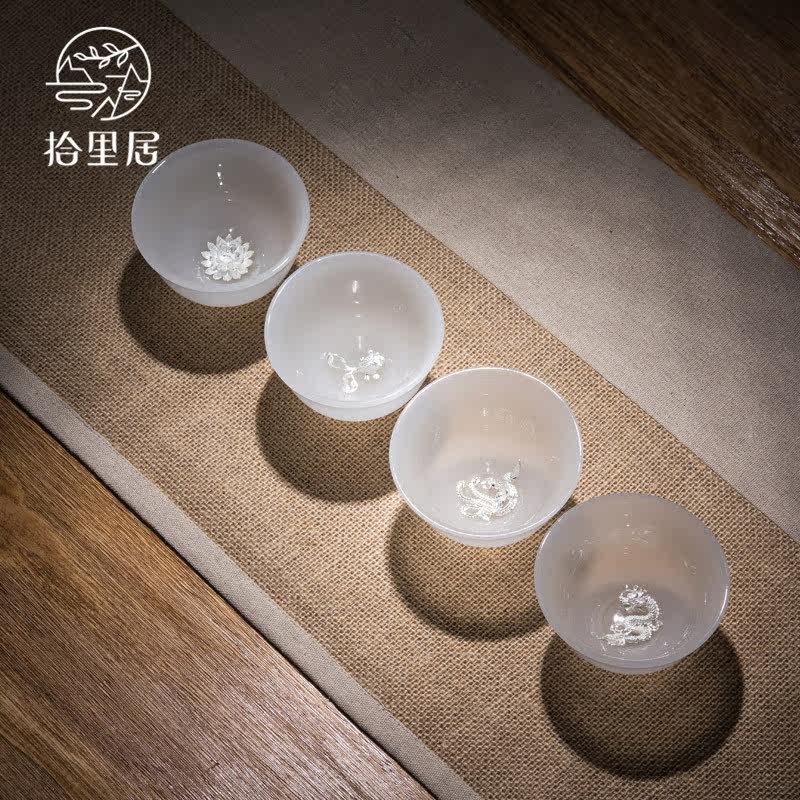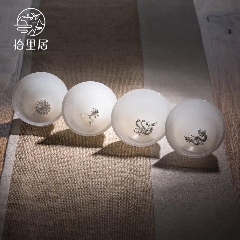 Shiliju master cup White porcelain jade inlaid silver teacup Whitebait cup Tea cup Single cup high-end gift tea set