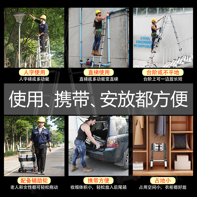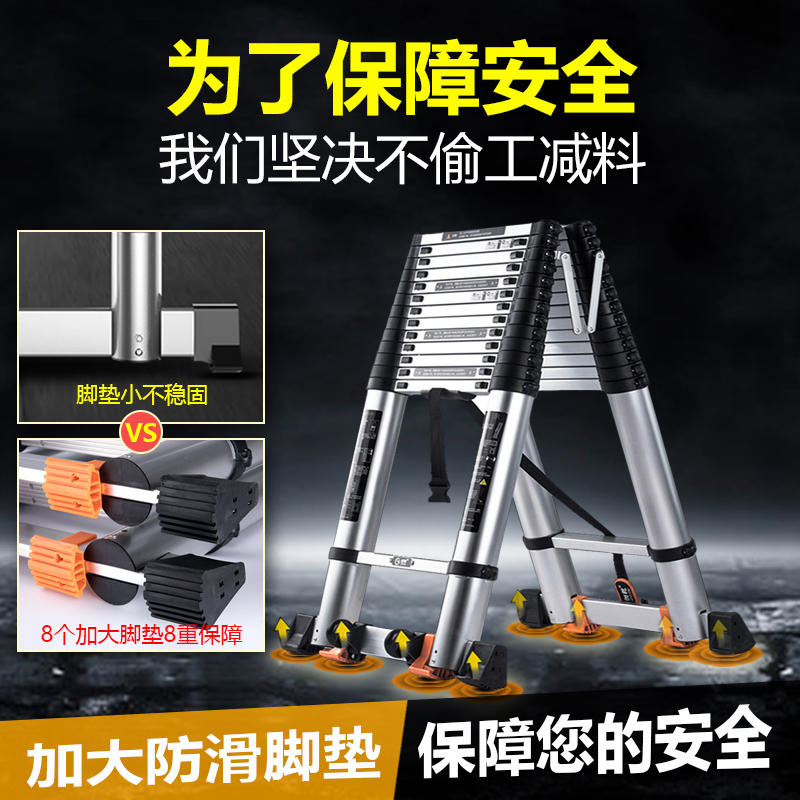 Chuangqian thickened telescopic ladder herringbone ladder multi-function project ladder aluminum alloy folding portable home storage room