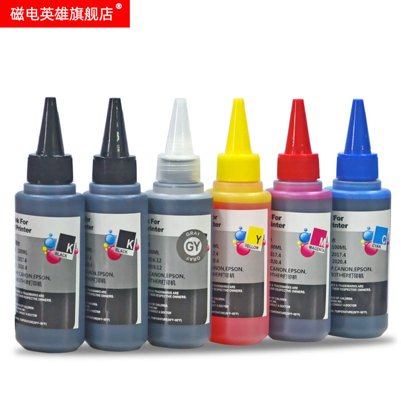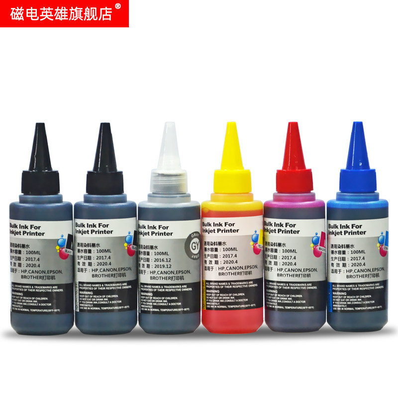 Large black BK (100ML giveaway ink instrumental) red M (100ML giver) yellow Y (100ML giver with ink feeder) blue C (100ML giver)