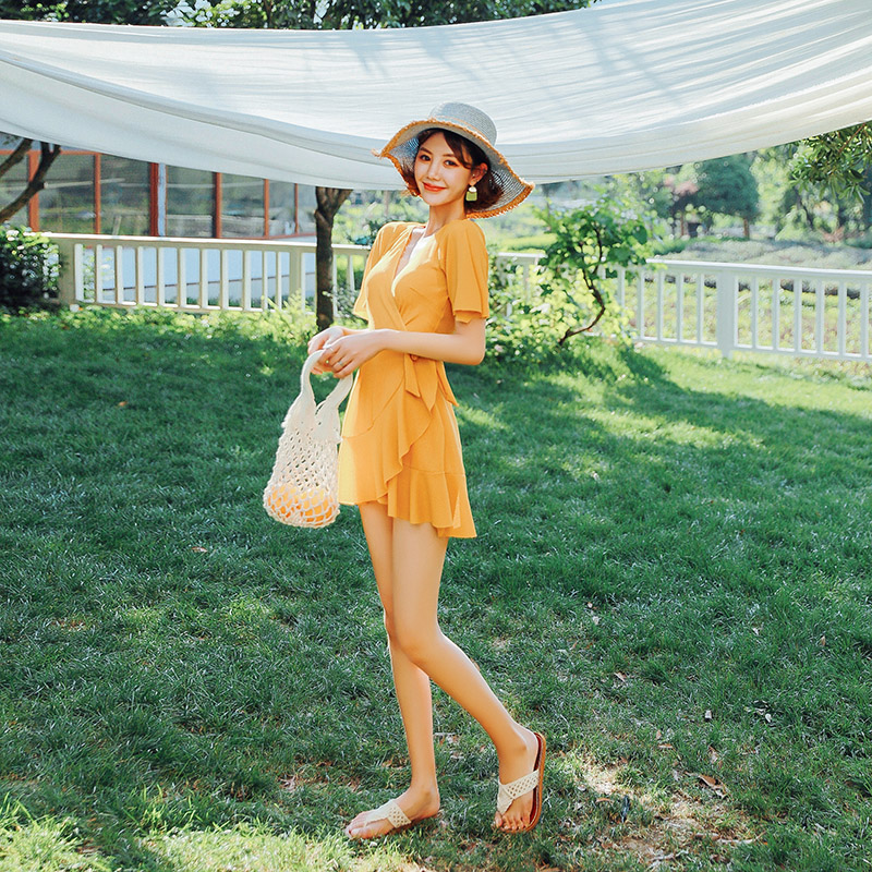 Spa swimsuit Women South Korea ins2021 new cover slim fit slim fit style large size flat corner fairy Fan