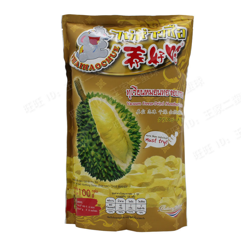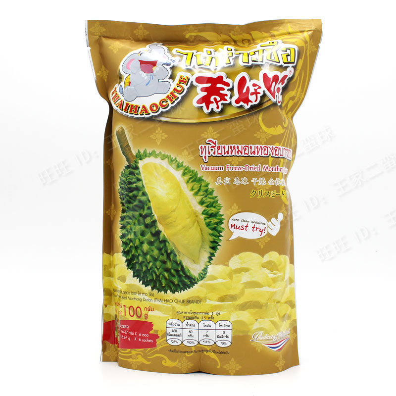 100 gr tasty durian dry 1 bag 100 gr Thai tasty durian dry 2 packs 100 gr Thai tasty durian dry 3 packs a couple of packs are presented with 1 packet of cashew nuts Oh ~