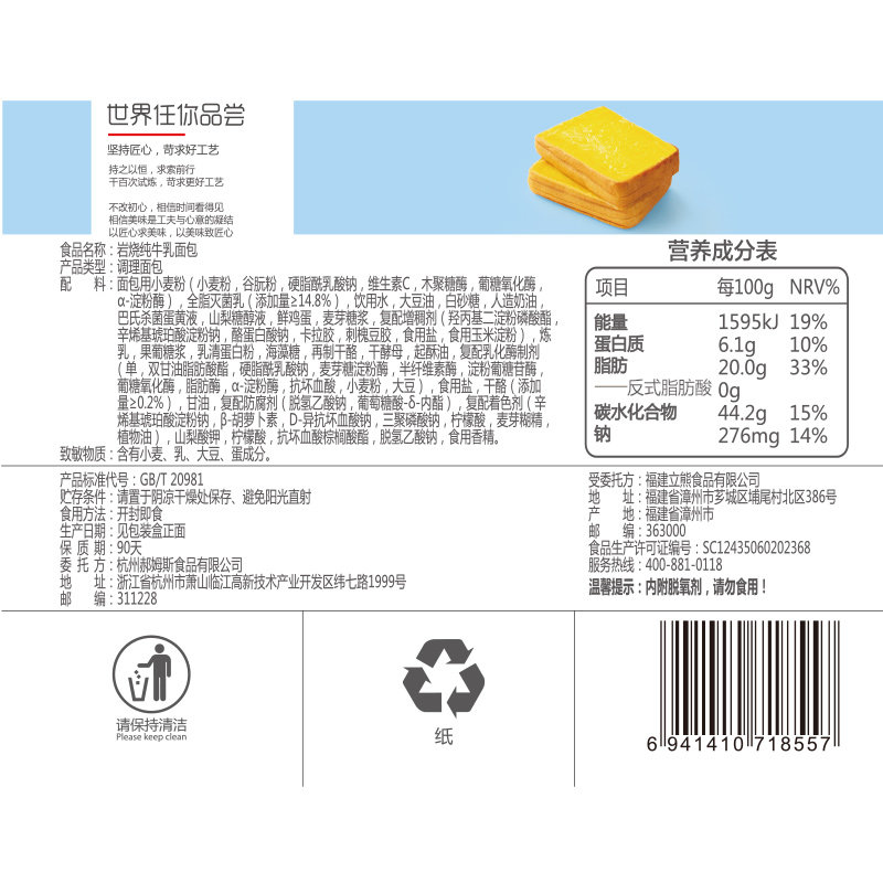 Thyme Flavor Rock Burning Tender Cow's Milk Toast 400g Milky Cheese Cheese Whole Boxes Nutritious Bread Snacks Snack Foods