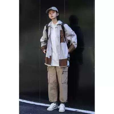 Nobodyknows Japanese minimalist personality color matching men and women casual loose stitching long sleeve shirt coat