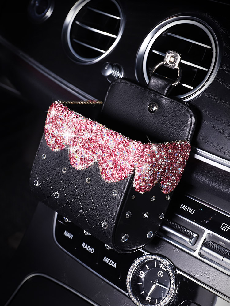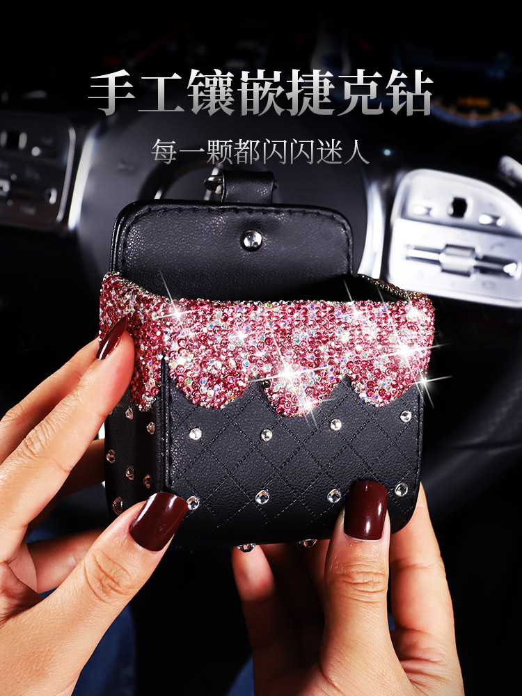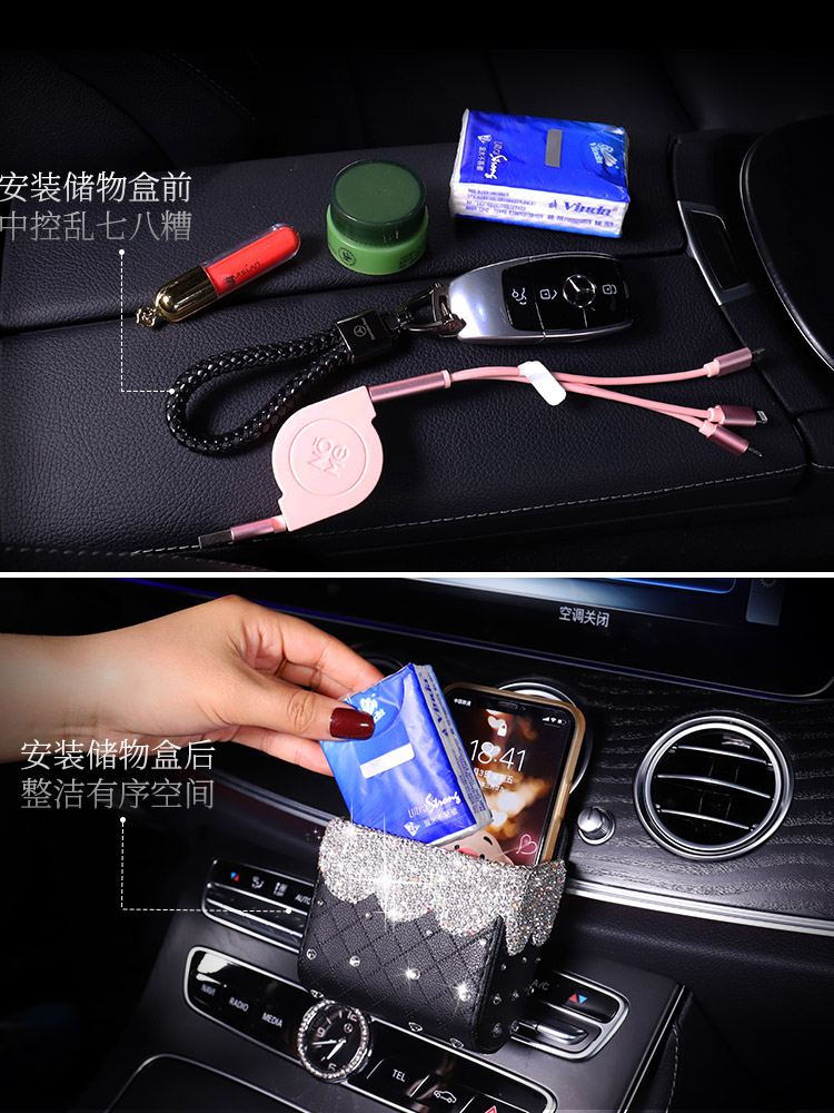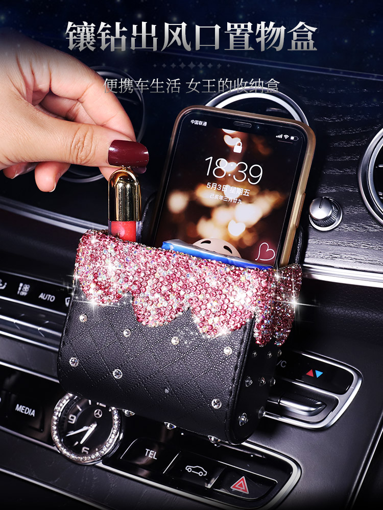 Suitable for Porsche Mercedes car storage bag hanging bag air outlet storage box car interior diamond mobile phone storage box female