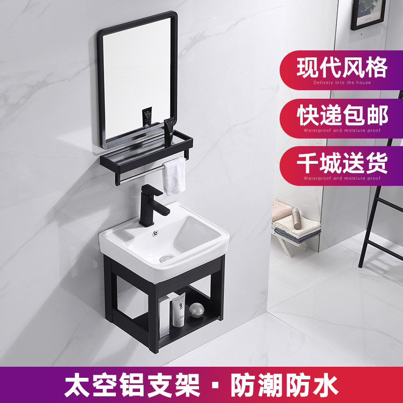 Wall-hanging basin cabinet combination small family dressing room mini bracket ceramic basin simple washbasin