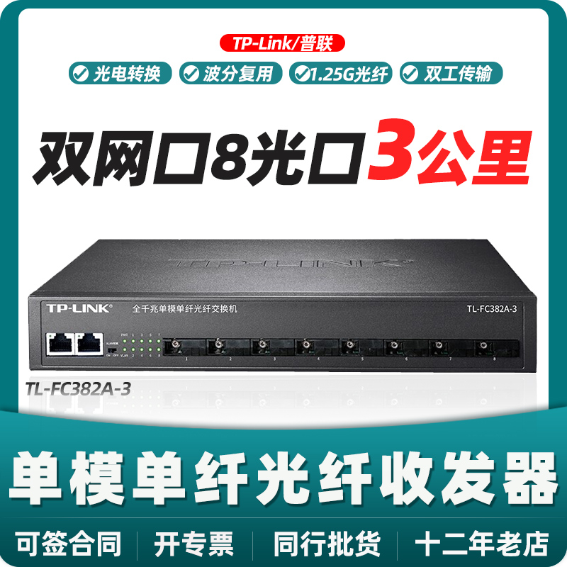 Pulian TP-LINK TL-FC382A-3 8 mouth full one thousand trillion single-mode single fiber optical fiber switch tplink photoelectric converter optical transceiver module SC connector 8 light 2 electric