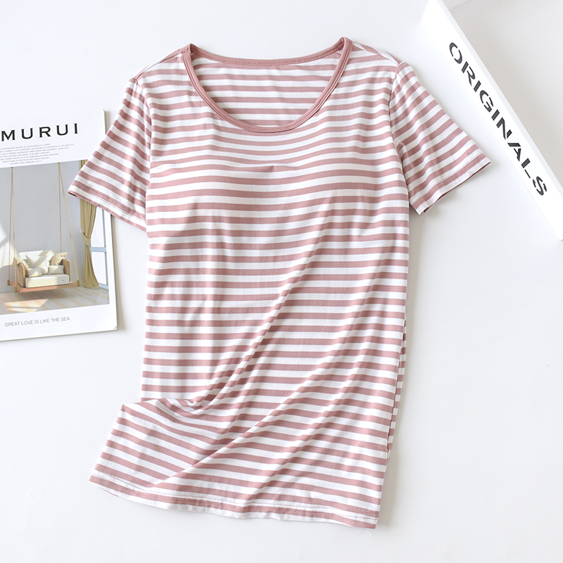 Lady blouses pyjamas with chest cushion BRA Summer thin Modale short sleeve big code movement free of wearing bra cups-Taobao