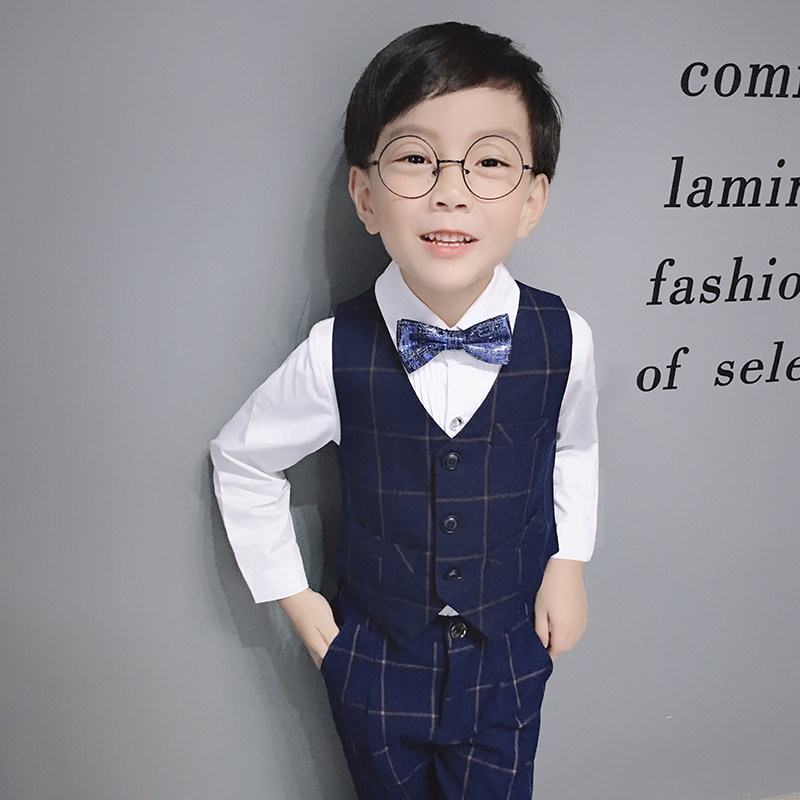 Boy suit suit Autumn new little flower girl dress baby children casual suit three-piece suit handsome Foreign style