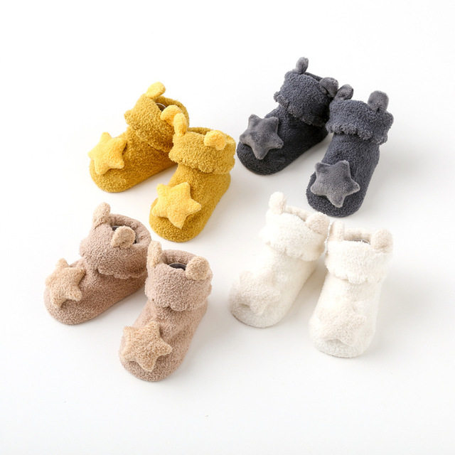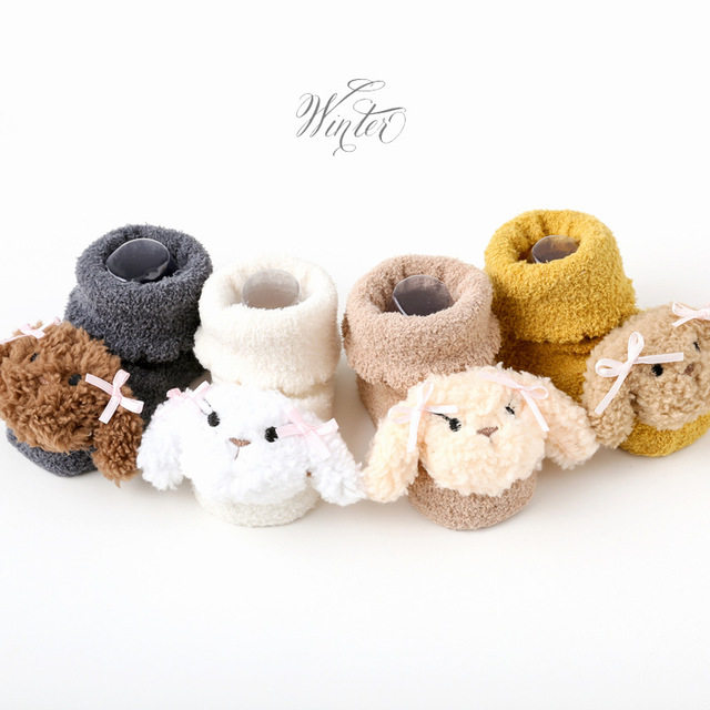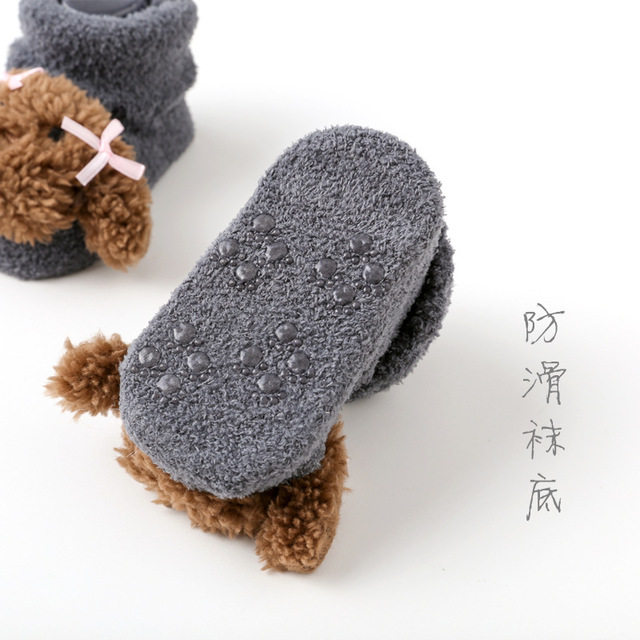 Baby Socks Autumn Winter Coral Suede Thickening Cartoon Puppy Paparazzi Socks Non-slip Newborn Baby Socks Gift Box Dress