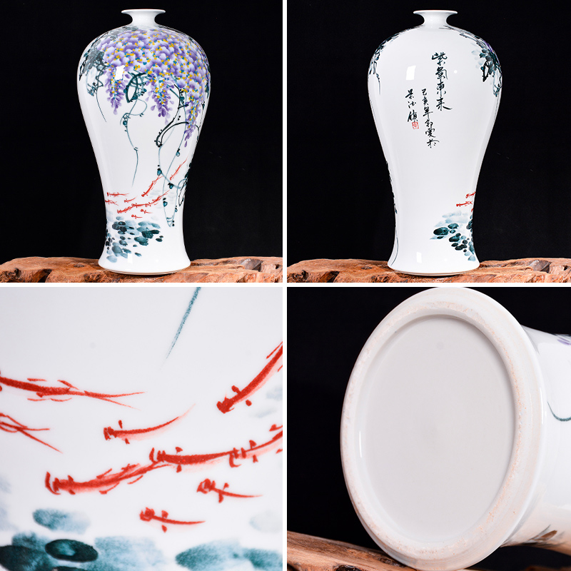 Jingdezhen Ceramic Vase Master Hand-painted Purple Gas East to Chinese Home Living room TV Closet Bou Rack Pendulum