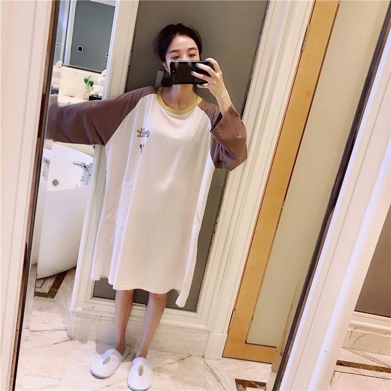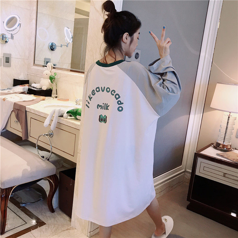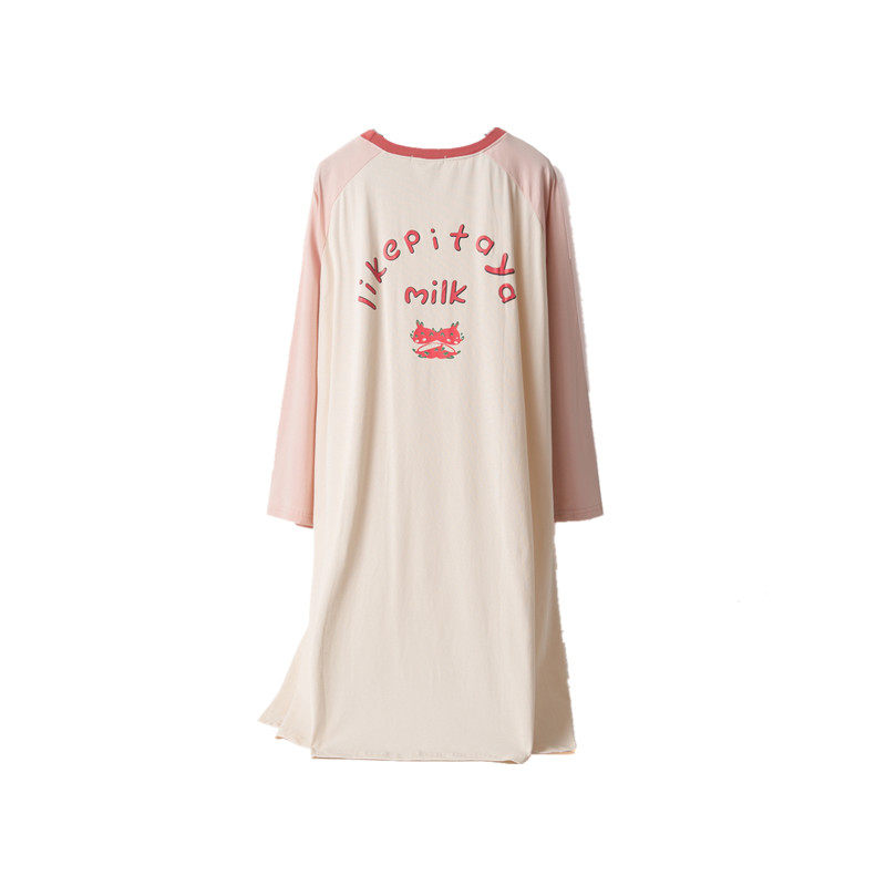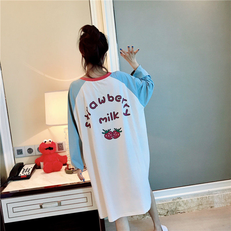 Han edition long sleeping skirt spring and autumn pure cotton fruit printing in lazy wind pajamas woman fat mm 200 pounds of home suit