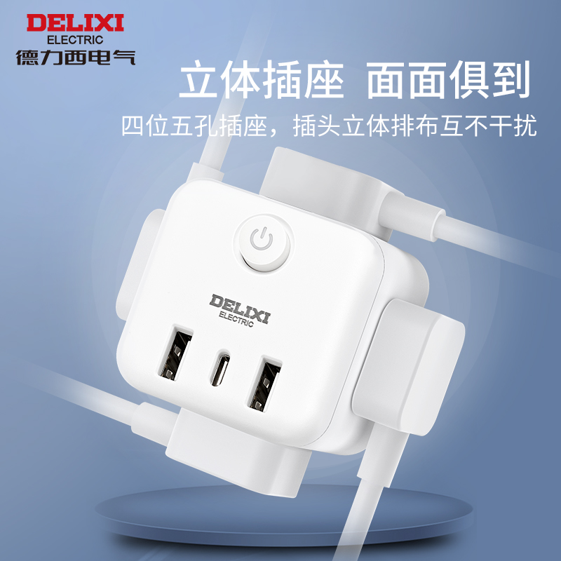 Delixi USB socket plug-in multi-hole plug-in extension line multi-function converter plug Rubik's cube socket