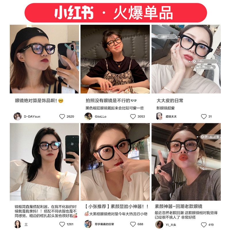Small red book black eye frame ins wind network red humbling with the same amount of vegan god device with large face and thin female myopia can be matched