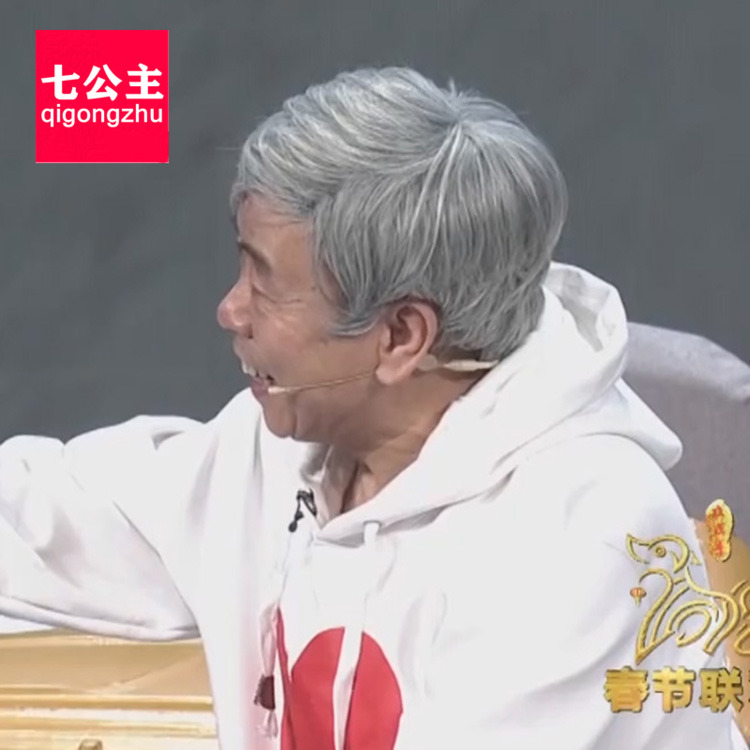 Stage performance old grandfather white wig daddy short straight hair props old man head set