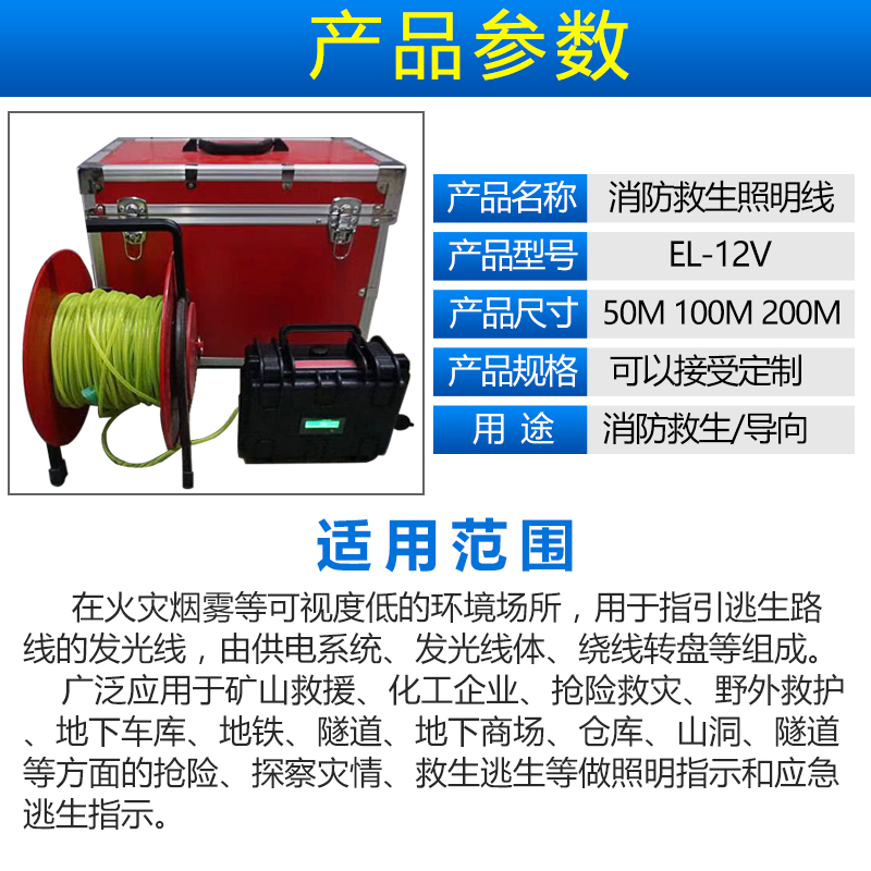 Fire life-saving lighting line Rechargeable luminous rope Search guide electronic fluorescent pointing rope 50 meters 100 meters 200