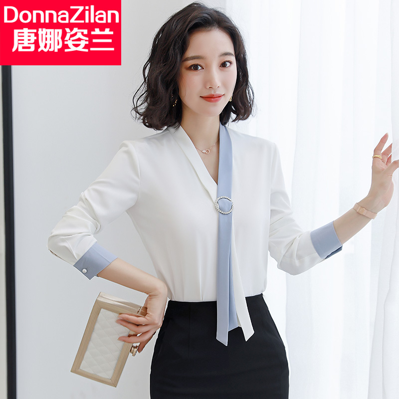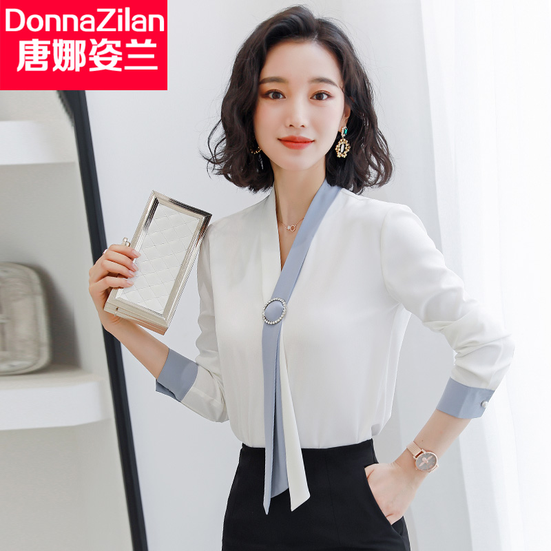 Chiffon white shirt women's new spring Korean version women's long-sleeved fashion Western-style professional shirt V-neck top