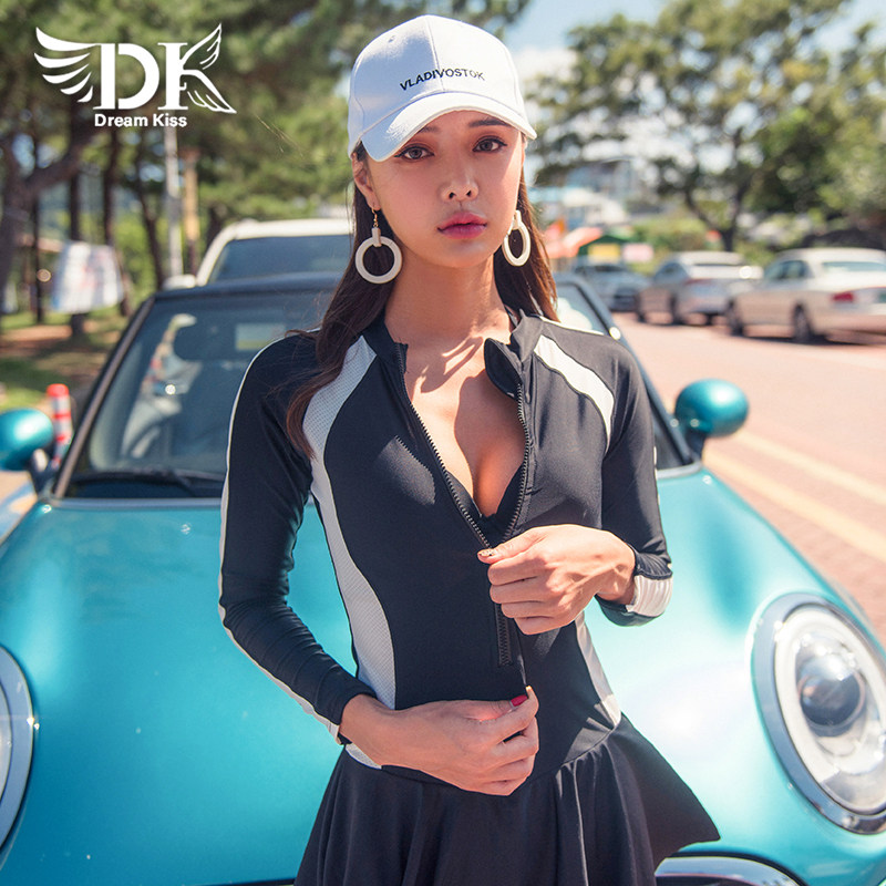 DK2022 new swimsuit women's dress style conservative display slim fit South Korea Ins Soak Spa Long Sleeve Swimsuit