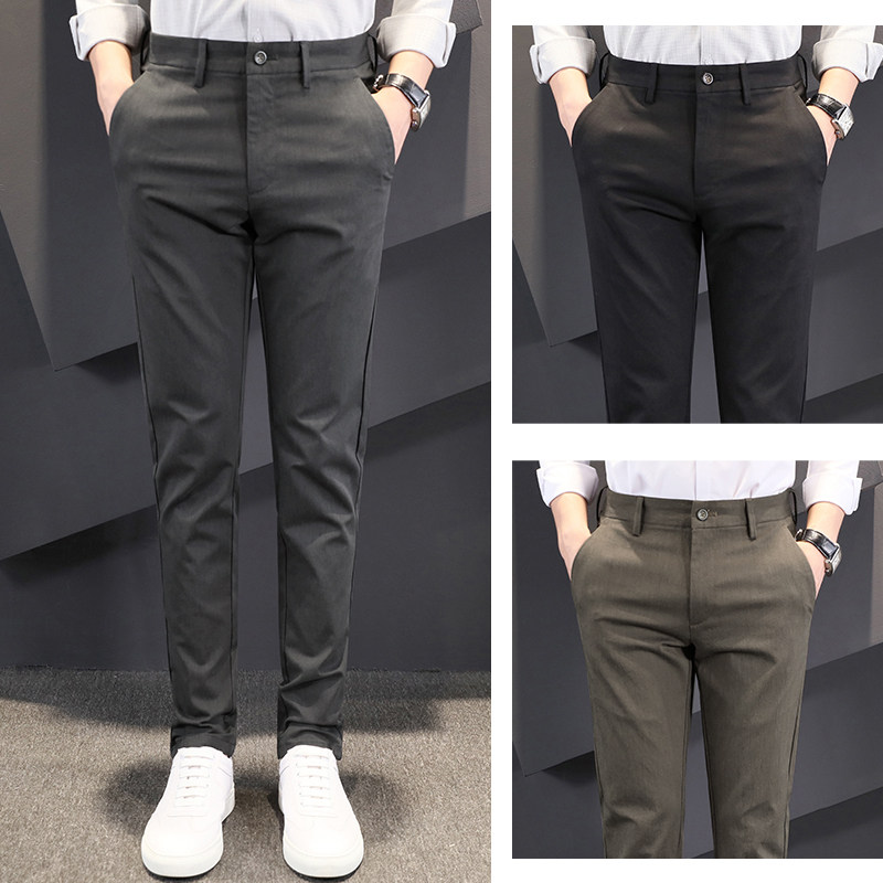 Default gray men's casual pants summer new slim men's pants Korean version of the trend pants men's small feet trousers pants