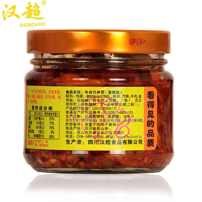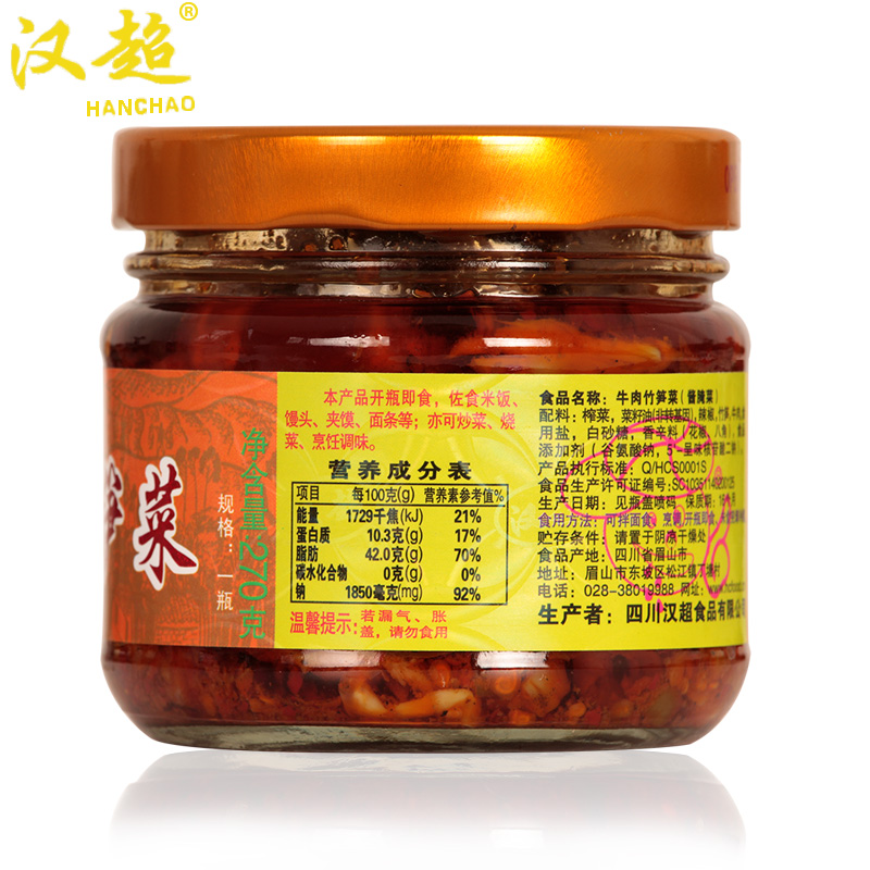 4 bottles set Han chao beef bamboo shoots vegetables 270g household bottled bamboo shoots squeezed vegetables spicy beef chili sauce hot sauce
