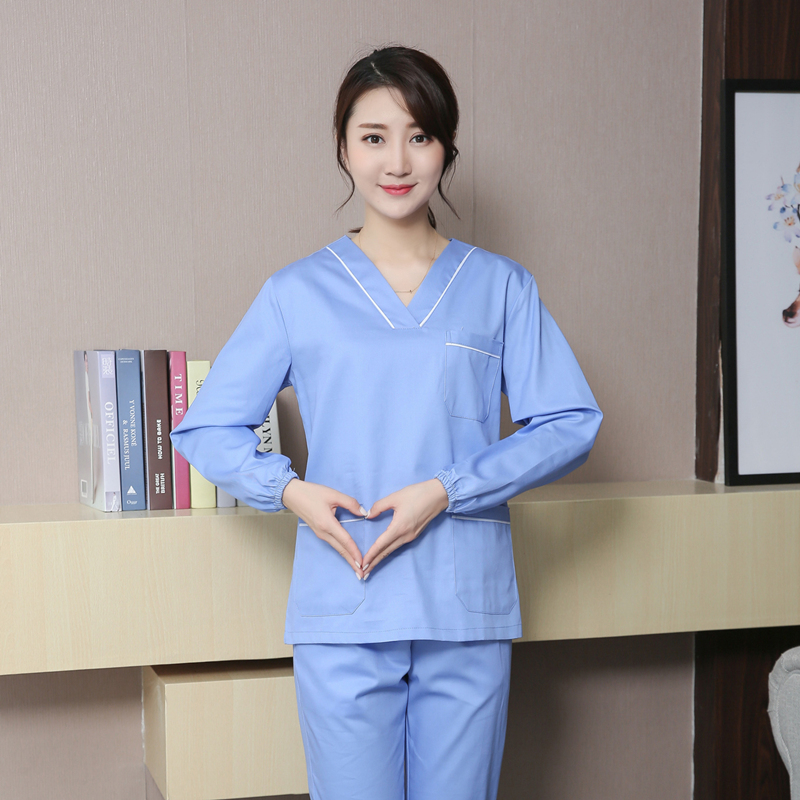 Korean version hidden green female long sleeve suit T C blend Korean version hidden cyan male long sleeve suit T C blend Korean version hidden cyan female long sleeve suit white side T C blend Korean version Tibetan cyan male long sleeve set