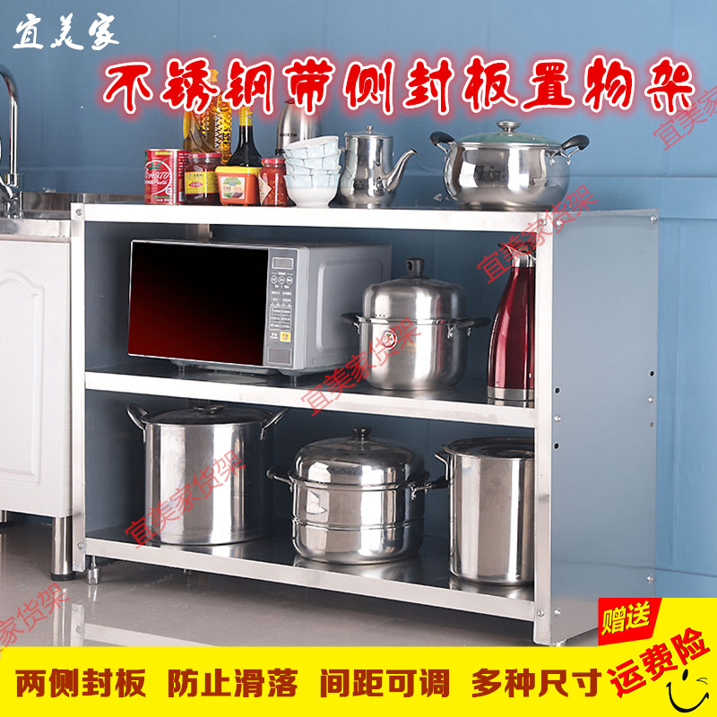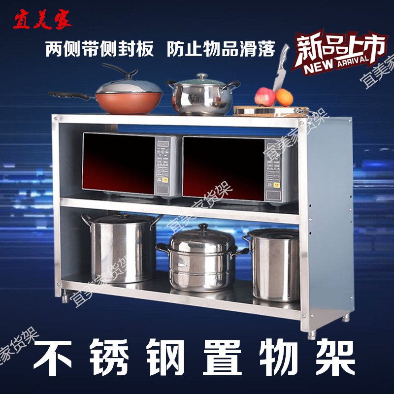 Stainless steel side sealing plate shelf restaurant kitchen household microwave oven oven rack living room storage layer rack warehouse rack