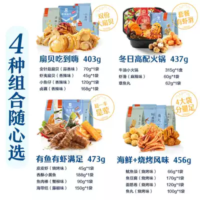 There are fish and shrimp (skin shrimp small yellow croaker fish meat stick about 24 small bags) 473g seafood hot pot (including small hot pot shrimp slippery octopus balls) 437g Seafood Barbecue Portions (including