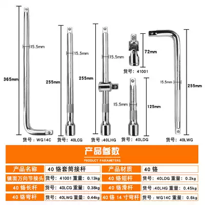 Tuosen 1 2-inch mirror universal joint long rod 10-inch sliding rod 14-inch L-shaped bending rod manual sleeve joint