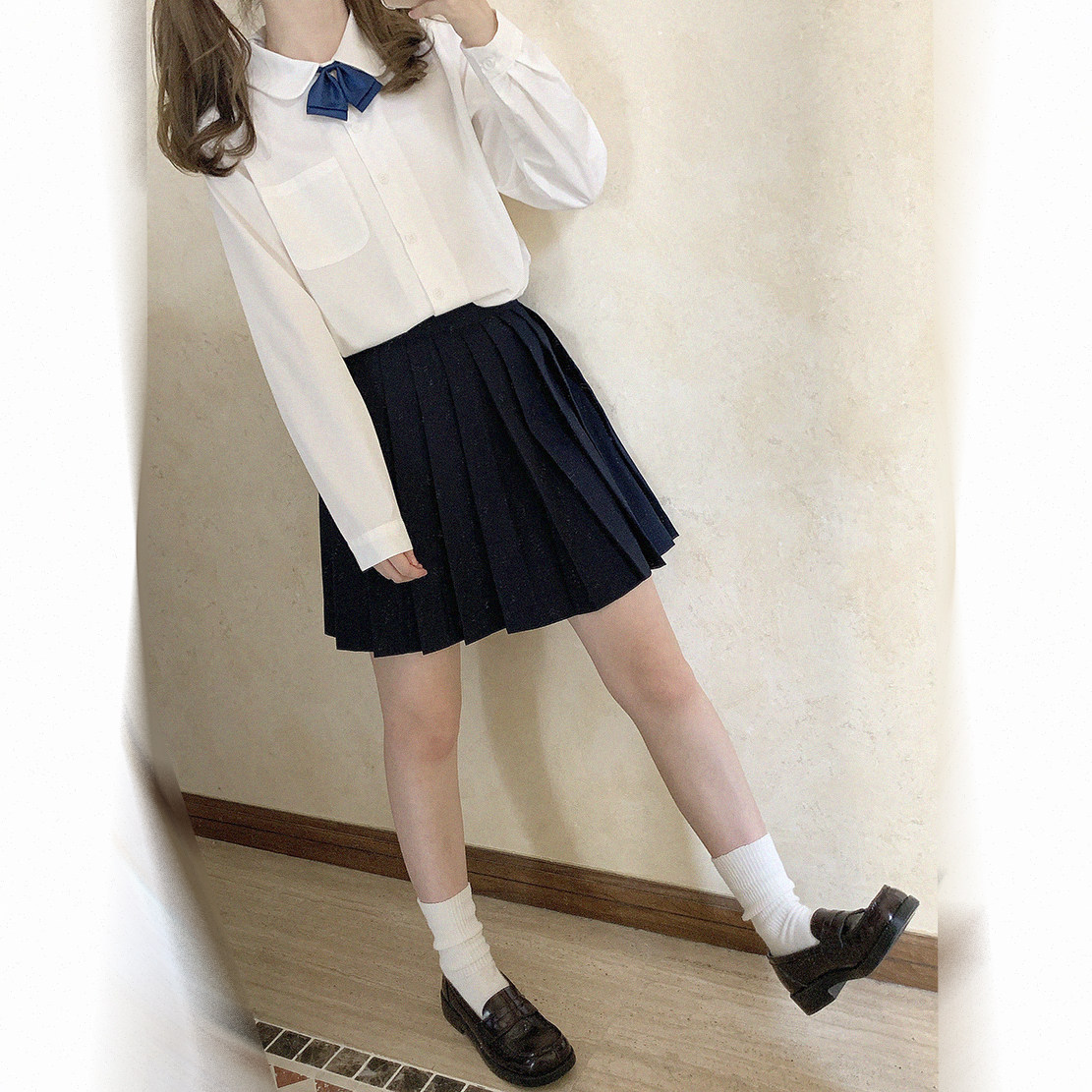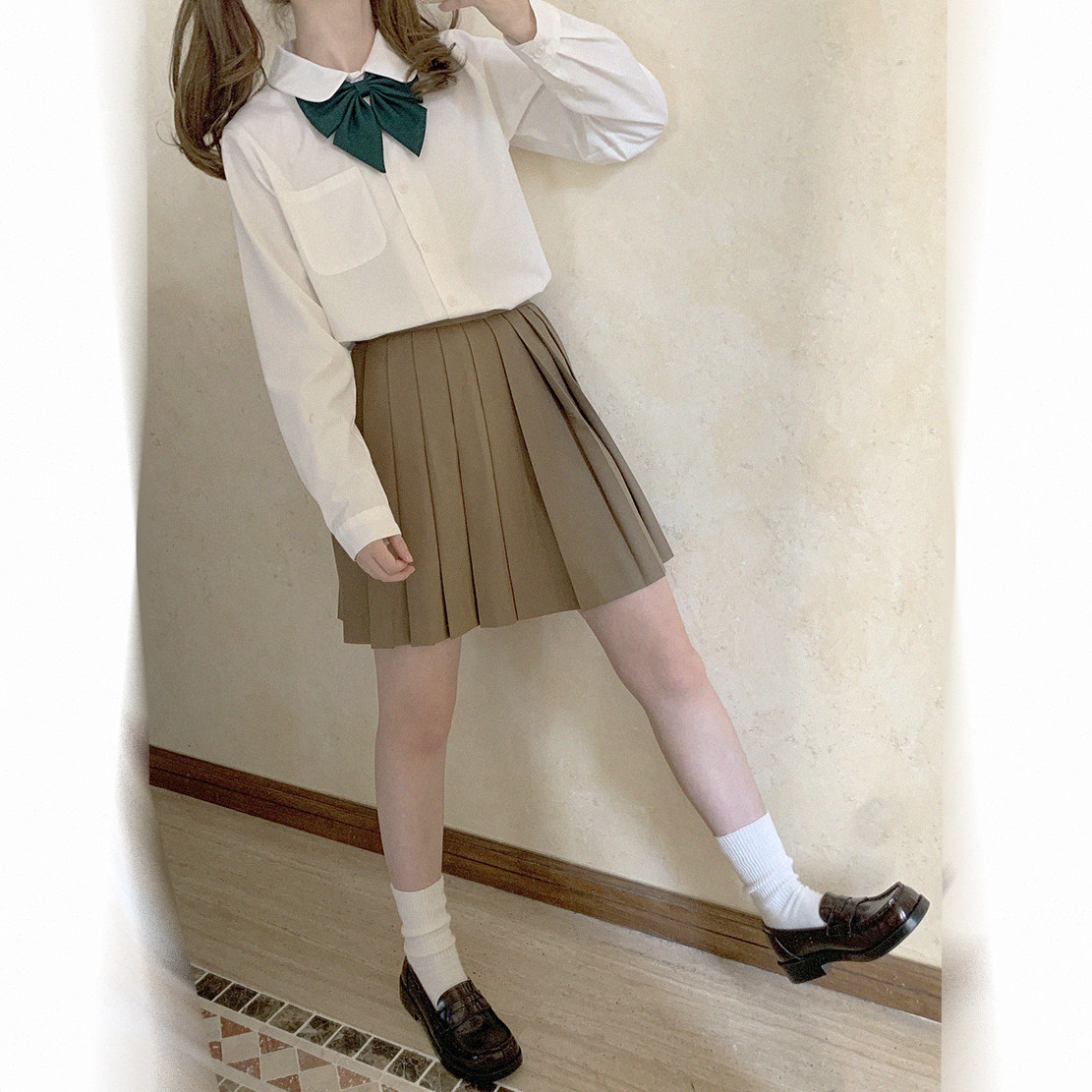PURE COLOR WHITE BLUE BEIGE GIRLS COLLEGE WIND BASE SECTION TR ROUND COLLAR SHIRT W