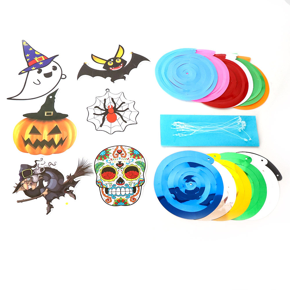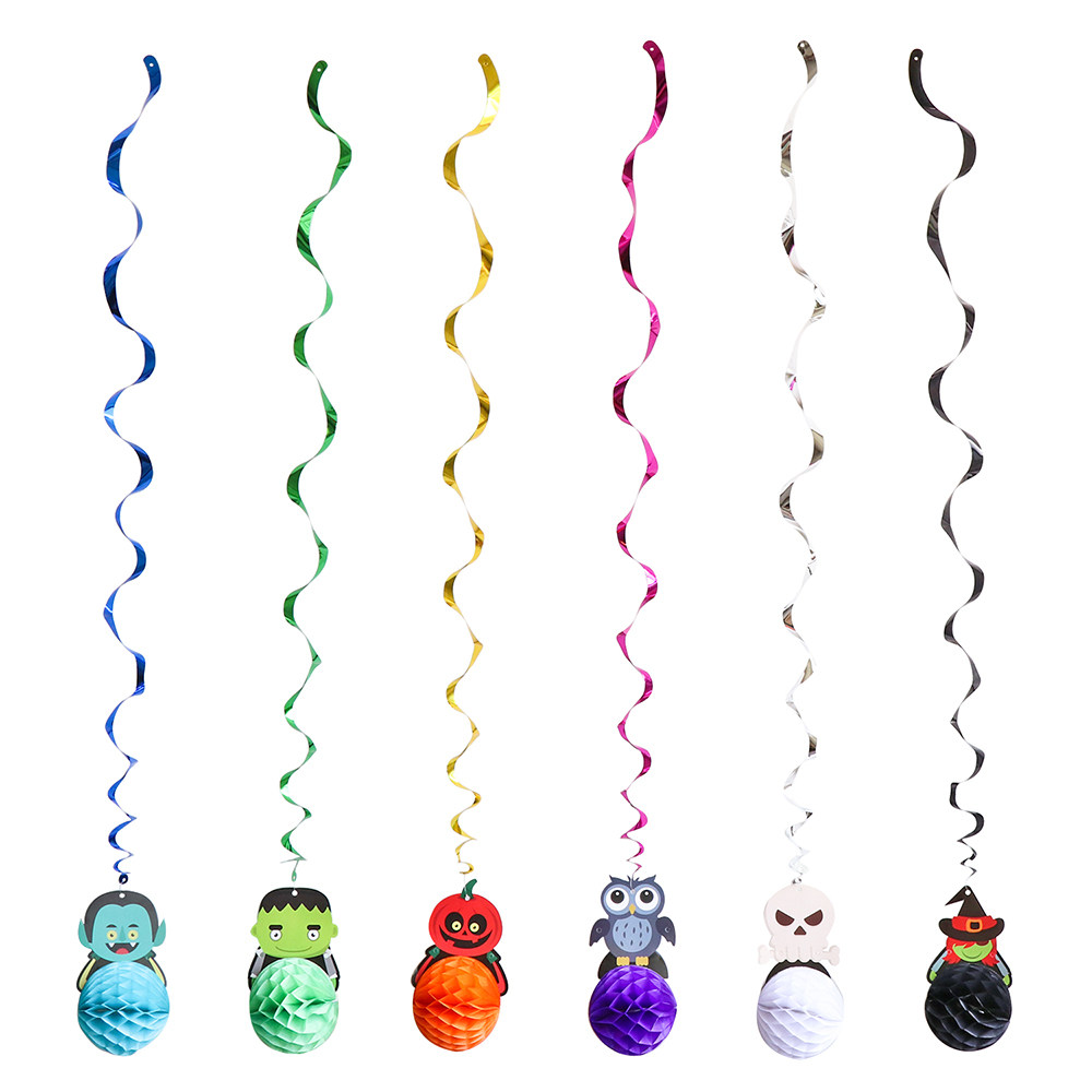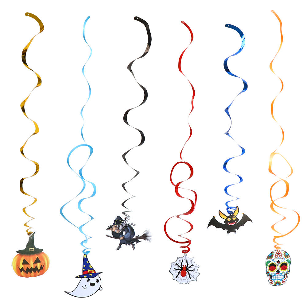 1 Spiral Charm PVC Hanging Color Strip Halloween Decoration Supplies Bat Skull Witch Pumpkin Pendant Ornament